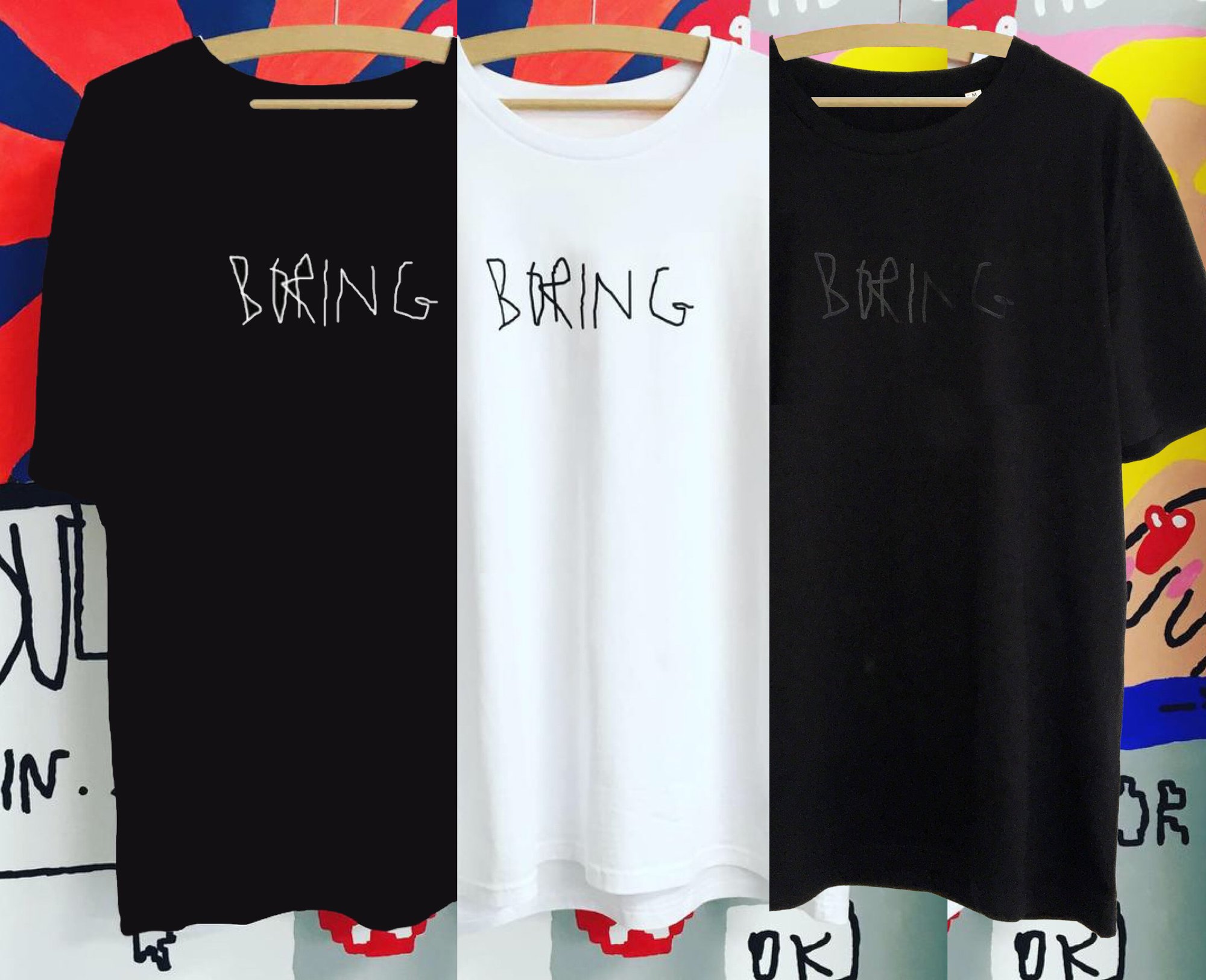 BORING T-SHIRTS: 🖤 black print on black shirt 🖤 screensprint 🖤 organic cotton shirts 🖤 unisex